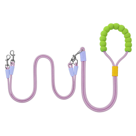 laisse double main libre poignee mousse rose